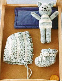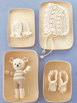 Bonnet, Booties, Mittens and Soft Toy for a Baby Posted on December 17, 2010 by Svetlana @ knits4kids Happy Crochet Time for My Baby (0-24 months)