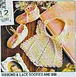 Ribbons and Lace Booties and Bib Posted on August 20, 2010 by Svetlana @ knits4kids Antique Crochet Booties & Bibs